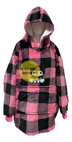 Maxi Poleron Capucha Manta Polar Bata Frazada - Cuadros