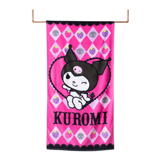 Toalla Playa Algodón Rosa 140x70 Cm Con Bolso Kuromi Lisa