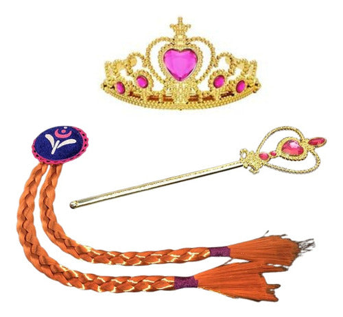 Princesa set corona cetro trenza anillo collar guante cosplay