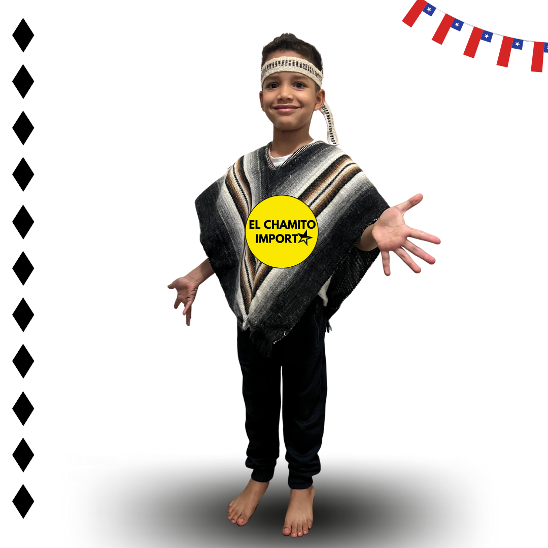 Set de Manto o poncho (Mapuche) mas cinto ( Trarilonko) para niño. Vestimenta tipica Mapuche para niños. NOTA: EL COLOR DEL PONCHO SE NEVIA SEGUN DISPONIBILIDAD PUEDE SER CUALQUIER COLOR DE LOS PUBLICADOS. INCLUYE: 1 Poncho 1 Trarilonco Edad Recomendada: -Chica: para niños de 2 a 5 años. -Mediana: Para niños de 6 a 8 años. -Grande: Para niños de 9 a 10 años. Medidas Segun Tamaño: -Chica: Largo 37cm / Ancho 55cm -Mediana: Largo 50cm / Ancho 56cm _Grande: Largo 57cm / Ancho 60cm HORARIO DE DESPACHOS DE LOS ENVIOS FLEX SON ENTRE LAS 18:00 A 23:00HR!!!