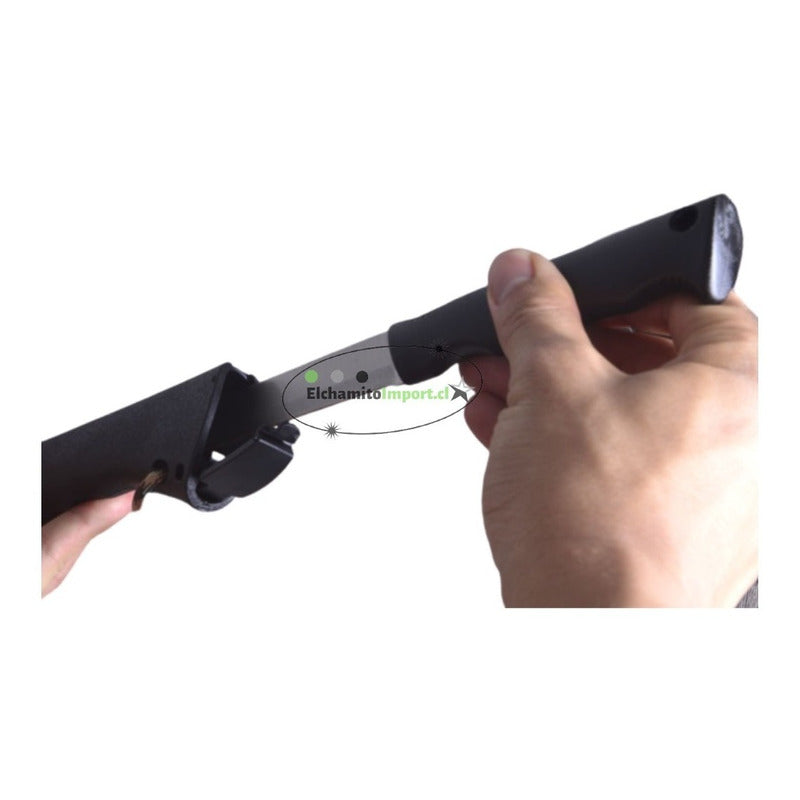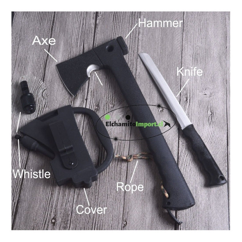Incluye: 1 hacha 1 cuchillo 1 pedernal 1 silbato 1 funda de plástico
