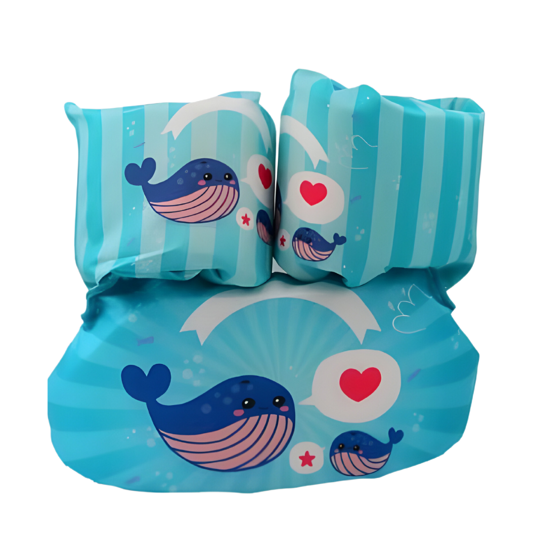 ACERCA DEL PRODUCTO: * Flotador frontal más dos alitas, todo en uno con correa ajustable. * Es perfecto para aprender a nadar, ya que permite al niño siempre mantener la cabeza a flote. * Protege los brazos y el pecho. * No es inflable, está relleno de "memory foam" (espuma de poliuretano) y por lo tanto el flotador siempre está listo para ser utilizado. * Es talla única y todo en uno. * Niños sobre 2 años hsta 6 Peso que soporta: hasta 24kg Adecuado para Contorno de 60 a 80cm INCLUYE: 1 CHALECO 2 ALITAS( Sujetas al chaleco) HORARIO DE DESPACHO DE LOS ENVIOS FLEX ES ENTRE LAS 18:00 A 23:00HRS!!!!