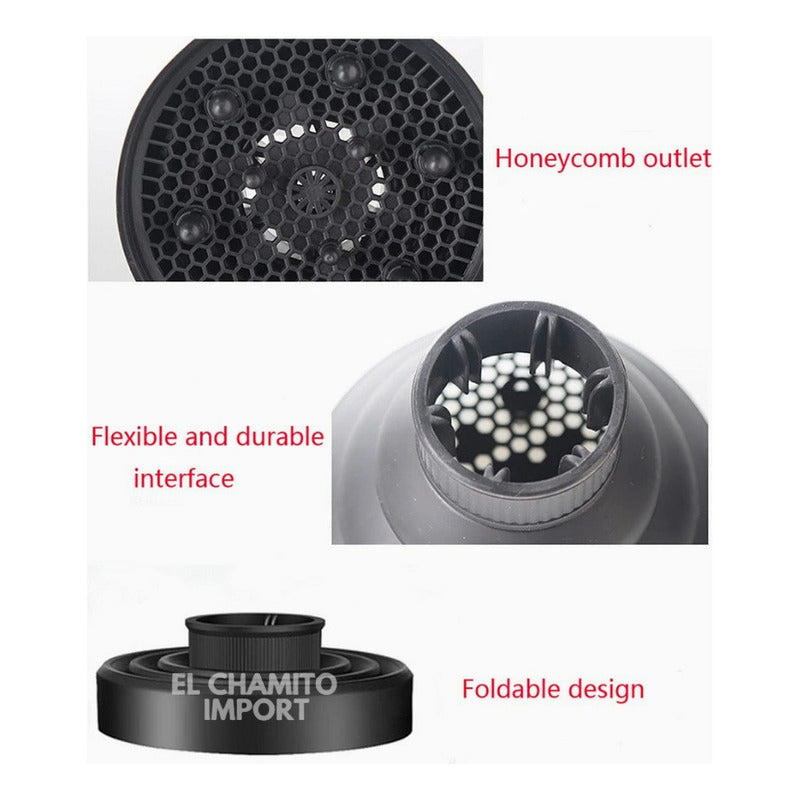 Descripción: Difusor de secador de silicona plegable Ideal para cabello naturalmente rizado, permanente, con aceite o ondulado Usa en diferentes direcciones para soplar el cabello, seca el cabello rápida y suavemente Diseño especial que ahorra espacio y es liviano Material aislante del calor, superficie táctil fría Universal para la mayoría de los secadores. Este difusor es mas comodo y practico a la hora de llevarlo a viajes. Especificación: Altura de extensión: aprox. 11.5 cm / 4.5 pulgadas, altura de plegado: 5.8 cm / 2.3 pulgadas Diámetro interno: aprox. 5 cm / 2 pulgadas Diámetro exterior: aprox. 13.5 cm / 5.3 pulgadas MATERIAL: BASE DE PLASTICO CON CUBIIERTA DE PLASTICO Nota: Nunca use el difusor cuando opere el secador de cabello a altas temperaturas ya que el sobrecalentamiento puede dañar el difusor. RECOMENDACIÓN DE USO: Usar con temperatura y velocidad media, para cuidar tu cabello y el difusor. HORARIO DE DESPACHO DE LOS ENVIOS. FLEX ES ENTRE LAS 18:00 A 23:00HRS!!!!