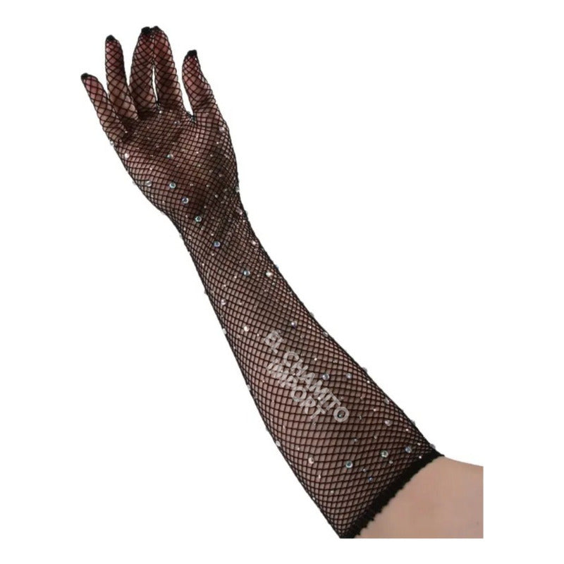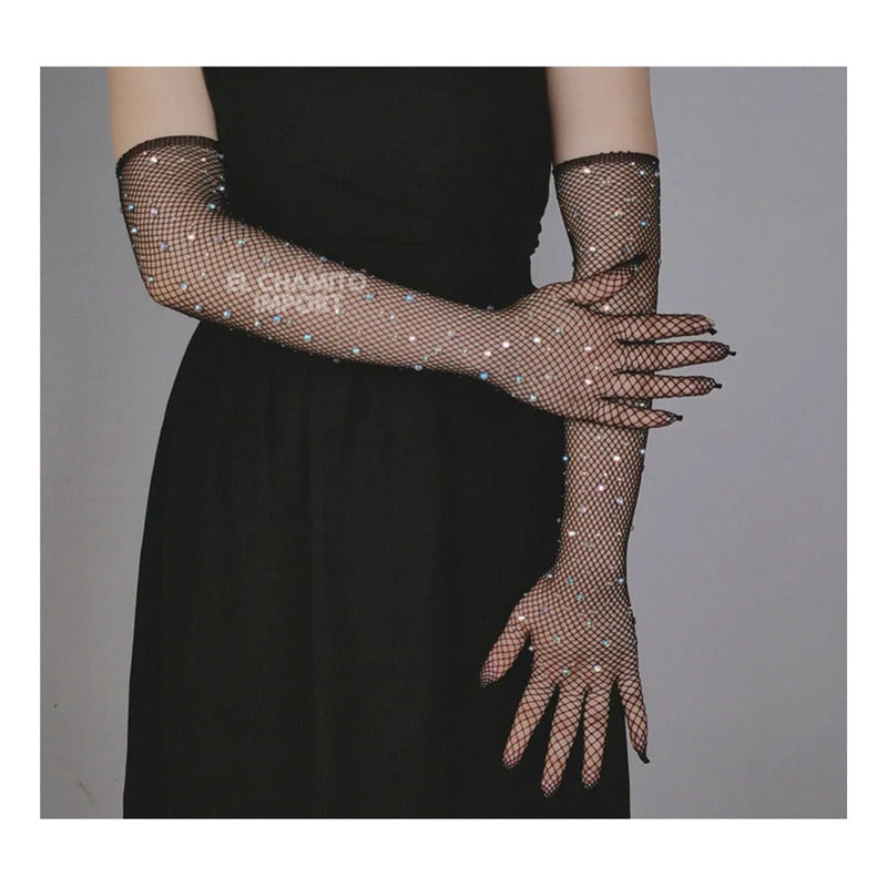 Modelo: Guantes largos de malla con brillos
