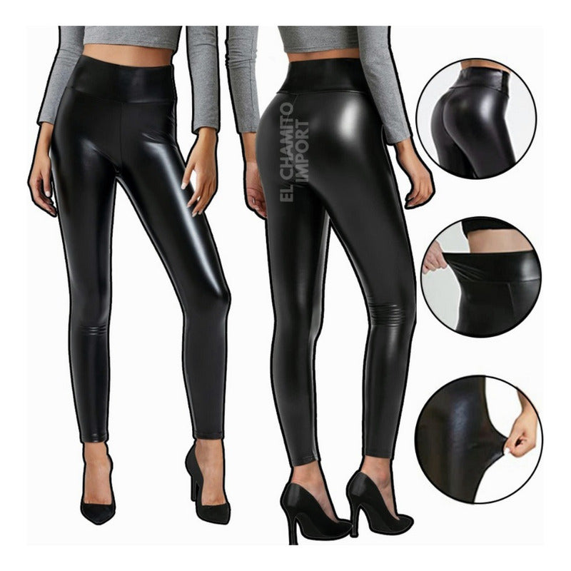 Calza Ecocuero Con Micropolar Tiro Extra Alto Elasticadas