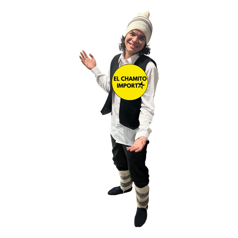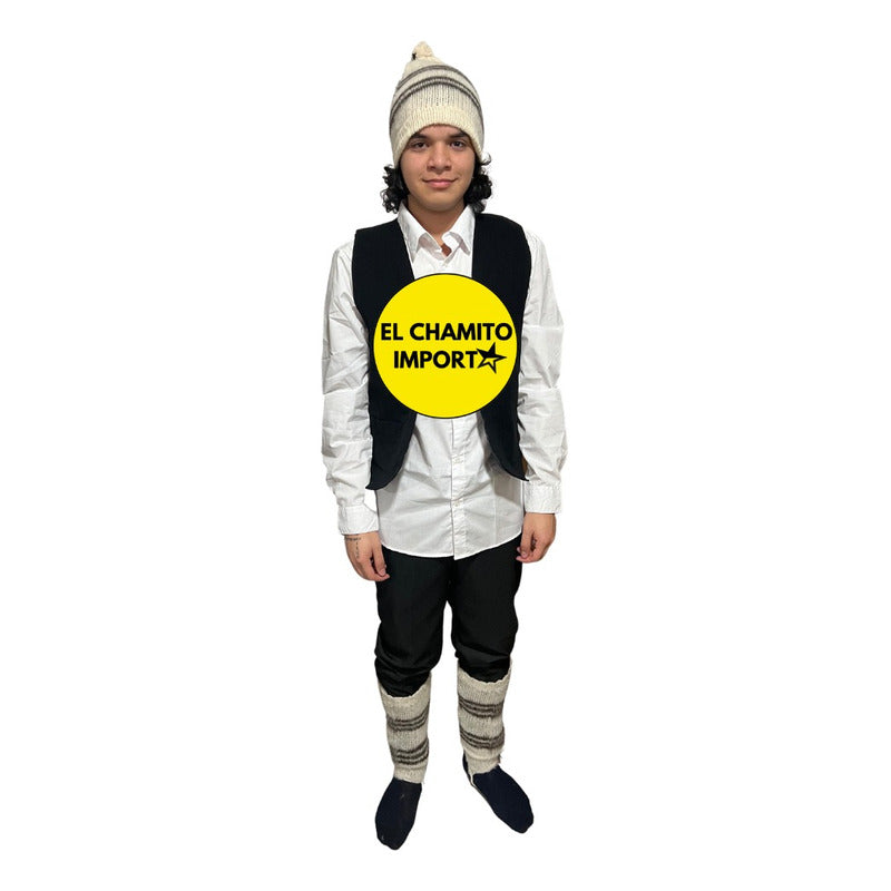 Vestimenta Traje tipico Chilote Traje Chilote ideal para Bailes escolares de representacion Bailes tipicos Fechas Patrias Chile. Traje tallas Juveniles: 14-16 INCLUYE: 1 Gorro 1 Par de polainas 1 Chaleco 1 Pantalon MEDIDAS SEGUN TALLA: TALLA 14: CHALECO: Largo: 52cm Ancho Pecho: 50cm Hombros: 33cm PANTALON: Largo: 88cm Cintura: 60-64cm TALLA 16: CHALECO: Largo: 54cm Ancho pecho: 51cm Hombros: 34cm PANTALON: Largo: 95cm Cintura: 65-68cm NOTA: NO INCLUYE CAMISA SI DESEA LA CAMISA SE VENDE POR SEPARADO HORARIO DE DESPACHO DE LOS ENVIOS FLEX ES ENTRE LAS 18:00 A 23:00HRS!!!!