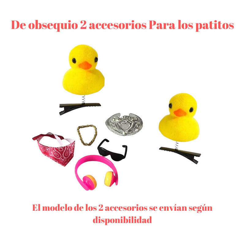Set de patito para niña El paquete incluye: 1 Tutu 2 Pinches (Con Accesorios) Talla standar para niña Edad recomendada: 2-8 años NOTA: SE ENVIAN 2 ACCESORIOS SEGUN DISPONIBILIDAD PARA DECORAR LOS PATITOS HORARIO DE DESPACHO DE LOS ENVIOS FLEX ES ENTRE LAS 18:00 A 23:00HRS!!!!