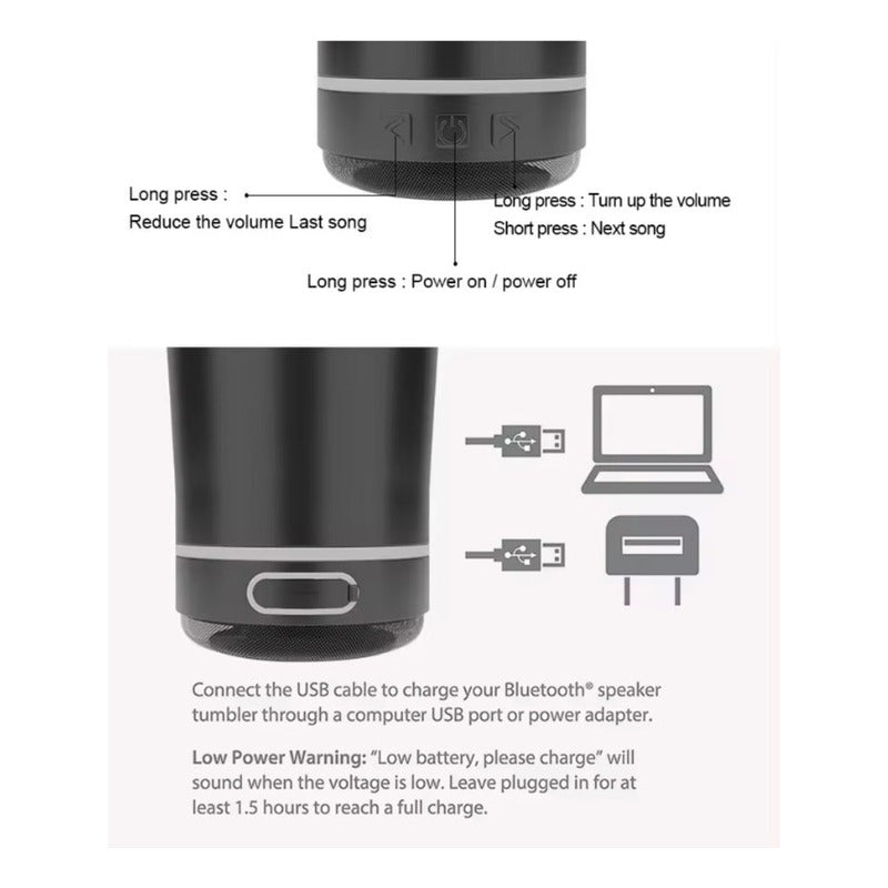 Vaso de altavoz de música, botella de agua, termo, altavoz de música LED inteligente, vaso Conecte el cable USB para cargar su altavoz Bluetooth® mediante un puerto USB de computadora o un adaptador de corriente. Advertencia de baja potencia: "Batería baja, cárguela" sonará cuando el voltaje sea bajo. Déjelo enchufado durante al menos 1,5 horas para alcanzar una carga completa. raducir texto con la cámara PARÁMETRO DEL PRODUCTO Tamaño: 10,5*10,5*22(cm) Capacidad: 780ml Peso: 500g Tiempo de juego: 5H Capacidad de la batería: 3,7 V 600 mAh Alcance del receptor Bluetooth: s10m Material: acero inoxidable 304 de calidad alimentaria Colores Disponibles: Rosa, Blanco , Rosa chicle y. Negro