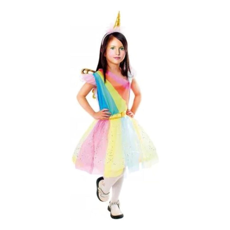 Disfraz De Unicornio Para Niña Vestido Con Alas + Diadema