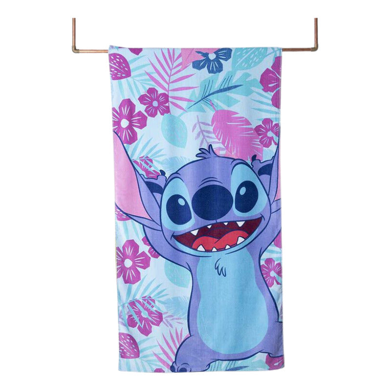 Toalla Playa Algodon C/ Bolso 140x70 Cm Celeste Stitch Flores Lisa