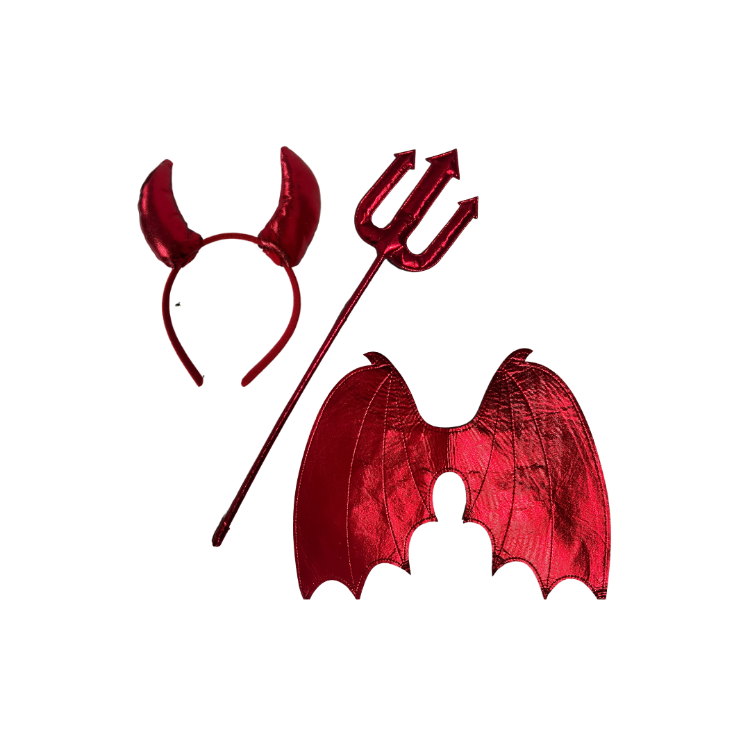 Set de Diablita de 3 Piezas Disfraz Ideal para Halloween Talla: Standar Uso recomendado para Mujer y Niña Set incluye cachitos + alas + tridente medidas alas 55 cm de ancho x 42 cm de largo HORARIO DE DESPACHO DE LOS ENVIOS FLEX ES DE 18:00 A 23:00HRS!!!!