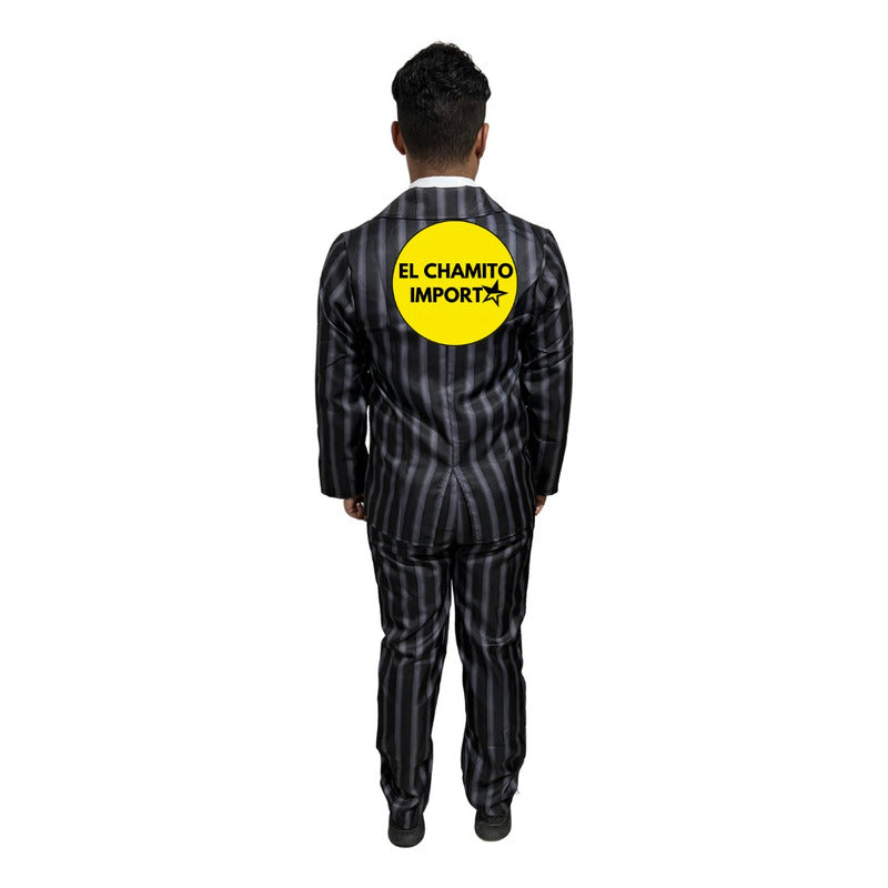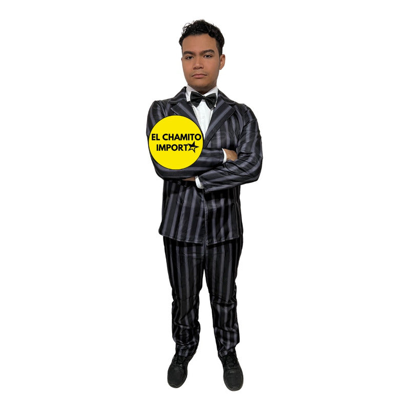 Disfraz inspirado en el personaje de Homero Addams, padre de Merlina. INCLUYE: 1 Chaleco 1 Pantalón 1 Pajarita para el cuello GUIA DE TALLAS: TALLA S: CHAQUETA: LARGO: 67CM PECHO: 95CM MANGA: 58CM PANTALÓN: LARGO: 100CM CINTURA: 80CM TALLA M: CHAQUETA: LARGO: 70CM PECHO: 102CM MANGA: 6OCM PANTALÓN: LARGO: 105CM CINTURA: 90CM TALLA L CHAQUETA: LARGO: 72CM PECHO: 105CM MANGA: 62CM PANTALÓN: LARGO: 105CM CINTURA: 100CM TALLA XL: CHAQUETA: LARGO: 75CM MANGA: 65CM PECHO: 110CM PANTALÓN: LARGO: 110CM CINTURA: 105CM ¡¡¡ENVIOS FLEX A PARTIR DE LAS 18 A 23 HORAS!!!!