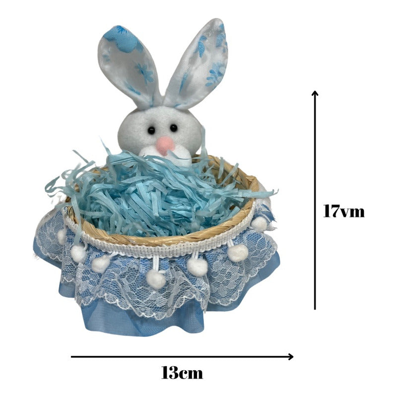 Set de Canasto para Huevos diseño Conejo + Paja EL PAQUETE INCLUYE: 1 Canasto 1 bolsa de paja 50g Medidas del canasto: 13cm de diametro 17cm de alto HORARIO DE DESPACHO DE LOS ENVIOS FLEX ES ENTRE LAS 18:00 A 23:00HRS!!!!