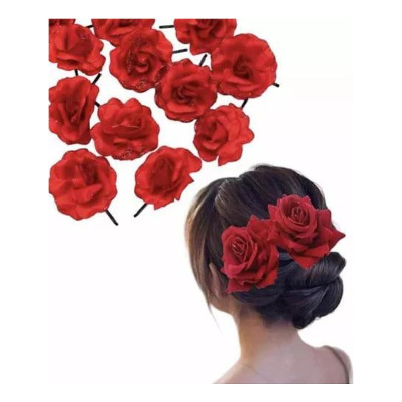 Set X12 Pinches De Flor Rosa Para Peinado Cabello Baile