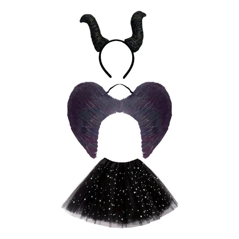 Disfraz Malefica Alas De Pluma Cuernos Tutu Mujer-niña