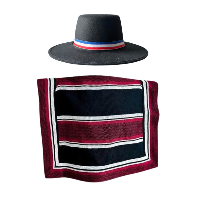 Manta Poncho Huaso Juvenil - Adulto + Sombrero Negro Rayas 90x60