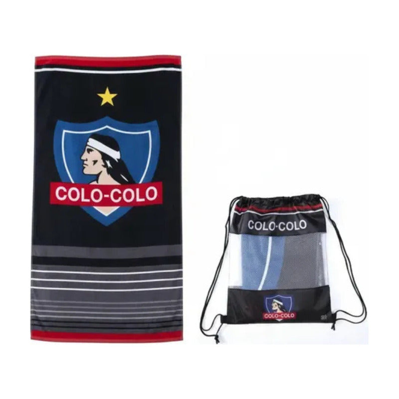 Toalla Playa Algodon C/ Bolso 140x70 Cm Negro Colo Colo Lisa