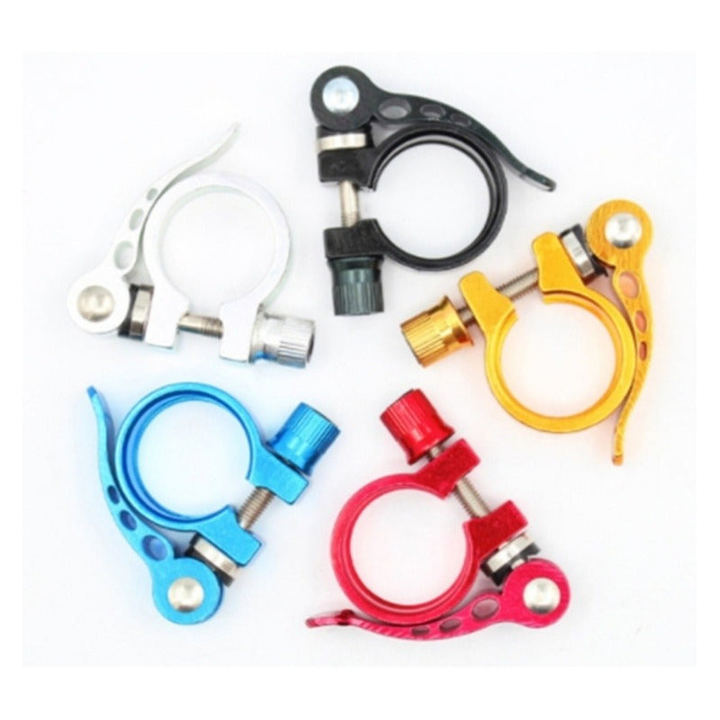 Descripción Características: - Diseño hueco, peso ligero. - Diseño de bloqueo de liberación rápida, fácil y conveniente de instalar y usar, puede ajustar la abrazadera en el camino incluso sin ninguna otra herramienta. - Junta, más resistente al desgaste y alarga la vida útil de la pinza. - Haga su bicicleta más conveniente para ajustar la tija del sillín. Especificaciones: Material: Aleación De Aluminio Montaje: tija de sillín de 30.4 / 30.8 (la bicicleta debe ser un cuadro de aluminio) Color opcional: Rojo, Azul, Amarillo, negro y plata. Peso: 55g
