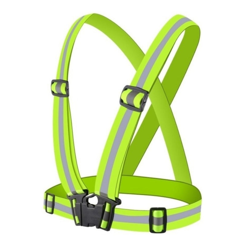 Arnes reflectante de seguridad Características: Chaleco de seguridad para todo tipo de actividades outdoor: Ciclismo, running, trekking, pesca, caza, seguridad, etc. - Color amarillo flúor - Bandas reflectantes de alta potencia - Bucle profesional - Material: fibra de poliéster - Medidas: 42 x 52 cm