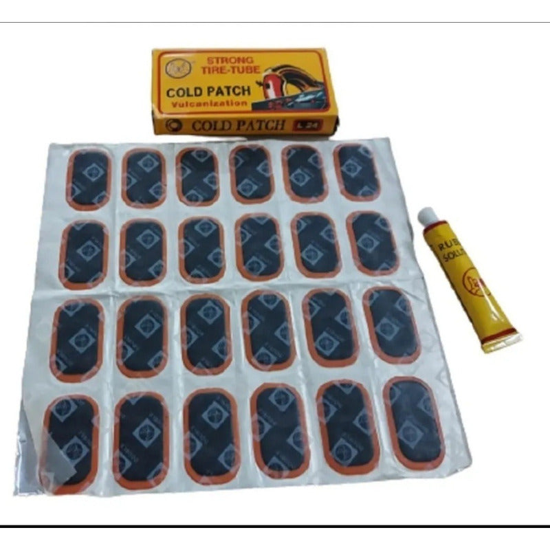 Kit de 24 parches de repacion más pegamento .