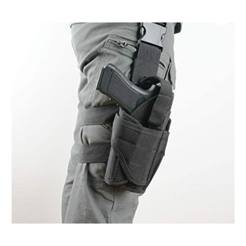 LUGAR PERFECTO: gracias a las correas de seguridad de gancho y bucle y botón, el arma queda segura dentro del soporte. Además, puedes ajustar las correas elásticas para la pierna a tu propia talla.