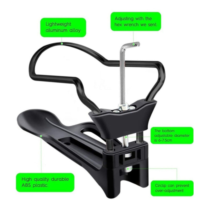 Descripción Características: 1, Compatibilidad: se adapta a varias botellas de agua de hasta 60-85 mm (2.4-3.3in) de diámetro. 2, Comodidad: Se suministra con las herramientas necesarias (los tornillos y la llave Allen) para la instalación en el cuadro de la bicicleta. 3, Protección: Diseño curvo para asegurar todos los ángulos posibles. 4, Comodidad: Fácil de acceder durante los paseos, ideal para ciclistas profesionales y aficionados. Detalles del producto: Material: aleación de aluminio + plástico de grado de ingeniería Color: negro Tamaño (Longitud * Ancho * Altura): 6.3 * 2.7 * 3.8 pulgadas / 16 * 6.8 * 9.6cm Peso: 68g El paquete incluye: 1 x Bicicleta jaula de botella de agua Nota bondadosa: 1. La parte inferior del soporte para botellas tiene una perilla de ajuste de tornillo fija, que se puede ajustar con la llave Allen. 2. La ventaja del ajuste es que puede controlar la tensión del soporte de botella para adaptarse a diferentes tamaños de botella. NO INCLUYE PERNOS NO INCLUYE BOTELLA