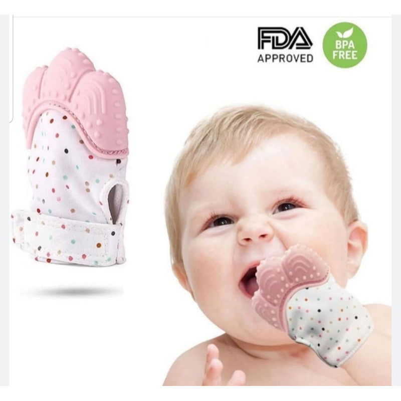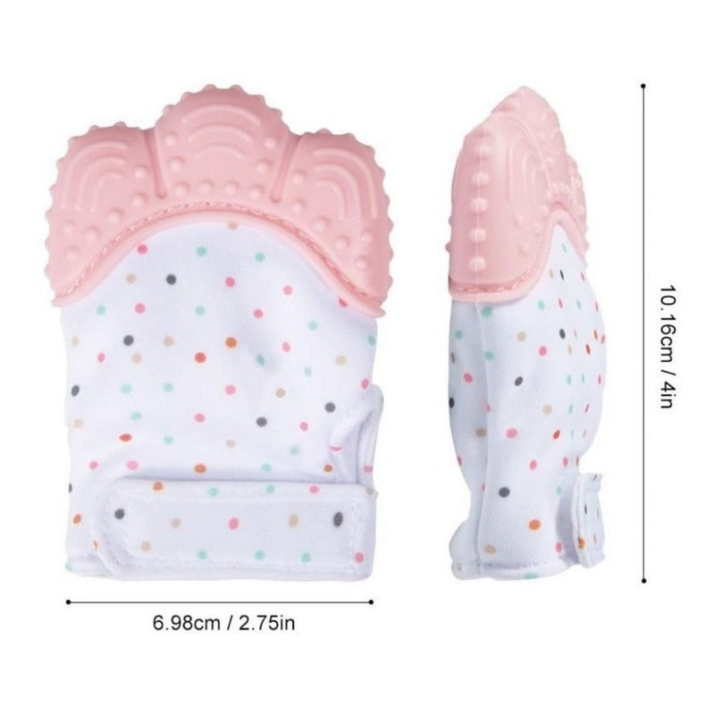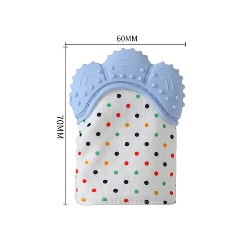 Accesorio importante para bebés, guante mordedor es un producto muy útil para los más pequeños en proceso de dentición, recomendable para bebes de 2 -24 meses. Es un alivio tanto para el bebé como para los padres, ayudan a los niños que sufren mucho dolor de encías, por eso lloran y buscan cosas para aliviar la incomodidad. Su forma de guante, hace que no se lo saque, así, su manito no se moja, no se irrita, no se enfría ni tampoco se ensucia. - La parte activa usada para masticar está hecha de silicona de grado alimentario y protege la piel del exceso de saliva. - Posee una correa ajustable para caer bien a la mano del bebé dependiendo de su tamaño, puede ser usado en ambas manos y es lavable - Fabricado en algodón y silicona. Libre de BPA Contenido del paquete: 1 Guante Mordedor.