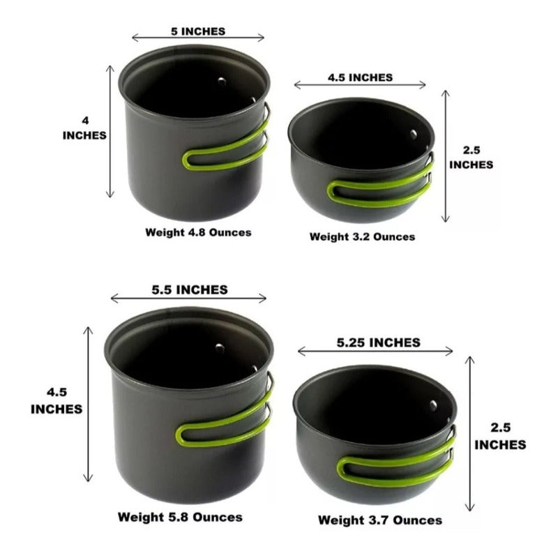 Tanto la olla como la sartén tienen asas plegables para ahorrar espacio y ser compacta.