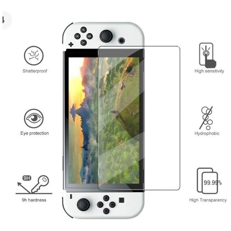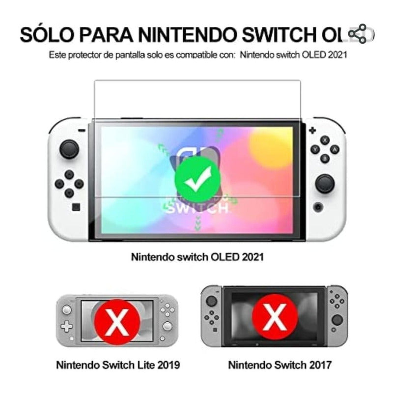Protector Nintendo Switch OLED 2021, Cristal Switch Mica de Pantalla Vidrio Templado 9H Doble-Reforzado Dureza Screen Protector Film,