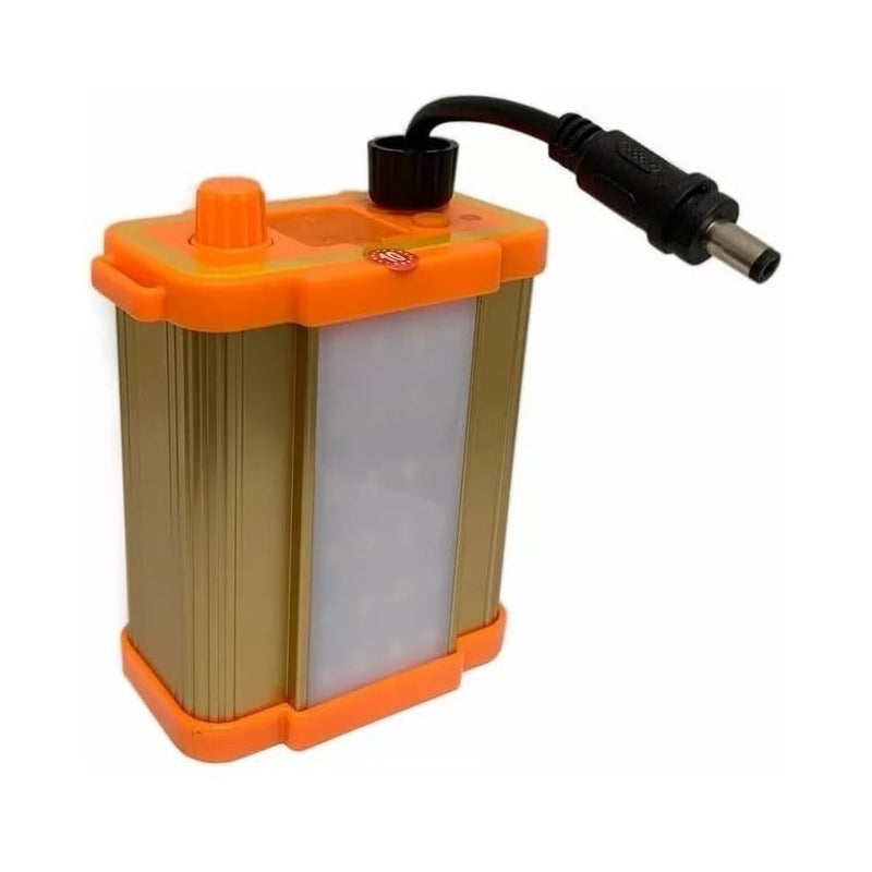 Linterna Foco Led 100w Caza Camping Minero. Lampara naranja Foco led 100w (reales) caza camping - Autonomía de trabajo: 8 hr con Luz fuerte 50 hr con luz tenue - Regulador de intensidad - Más de 300 mts alcance - Batería seca - Carga para celulares (usb) - Lampara led.