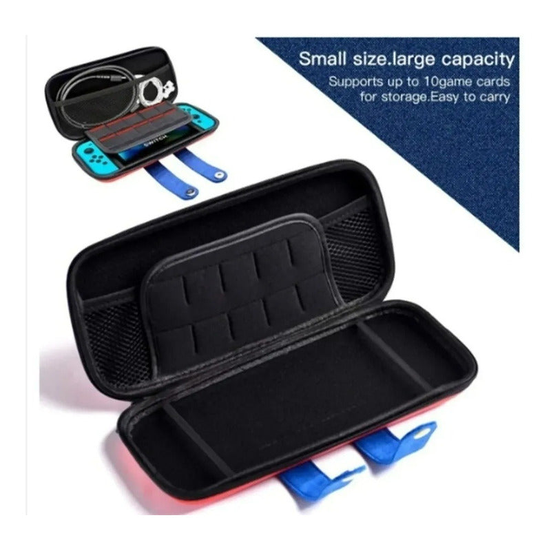 Descripción Bolso Nintendo Switch modelo Mario bross Cubierta protectora diseñado especialmente para el almacenamiento de tú Nintendo Switch Posee un gran tamaño con diversos bolsillos en su interior, y proporcionar espacio más pequeños para almacenar los accesorios como cable de carga, tarjetas SD, etc. Esta funda rígida para Nintendo Switch está compuesta por el material EVA, lo que hace que la calidad de la funda sea alta, además de resistente. Este accesorio se cierra con cierre y contiene en su interior dos bandas elásticas para evitar que la consola se salga o se mueva, reforzando así que no sufra ningún daño. Además de lo anterior, ofrece espacio para 10 cartuchos de juego. Ideal para llevar su consola a donde quieras.