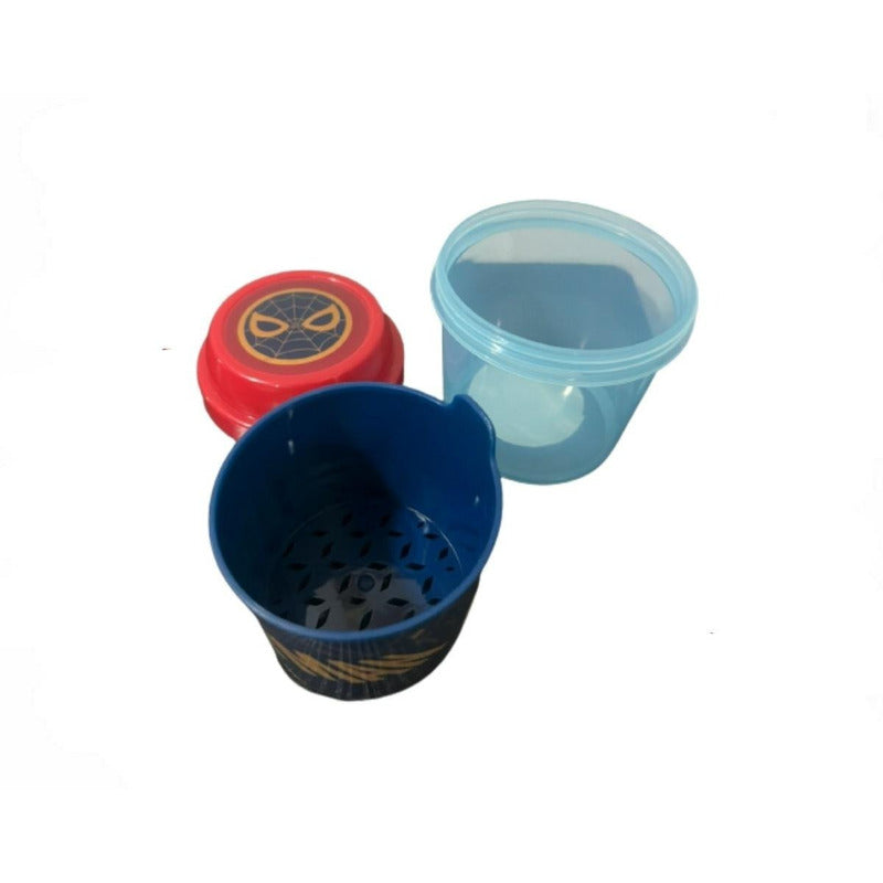 porta fruta snack de palstico libre de BPA ideal para que los niños disfruten de sus frutas y snacken cualquier momento con diseño de spiderman capacidad: 200ml Medidas: 10x9cm