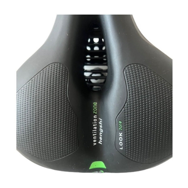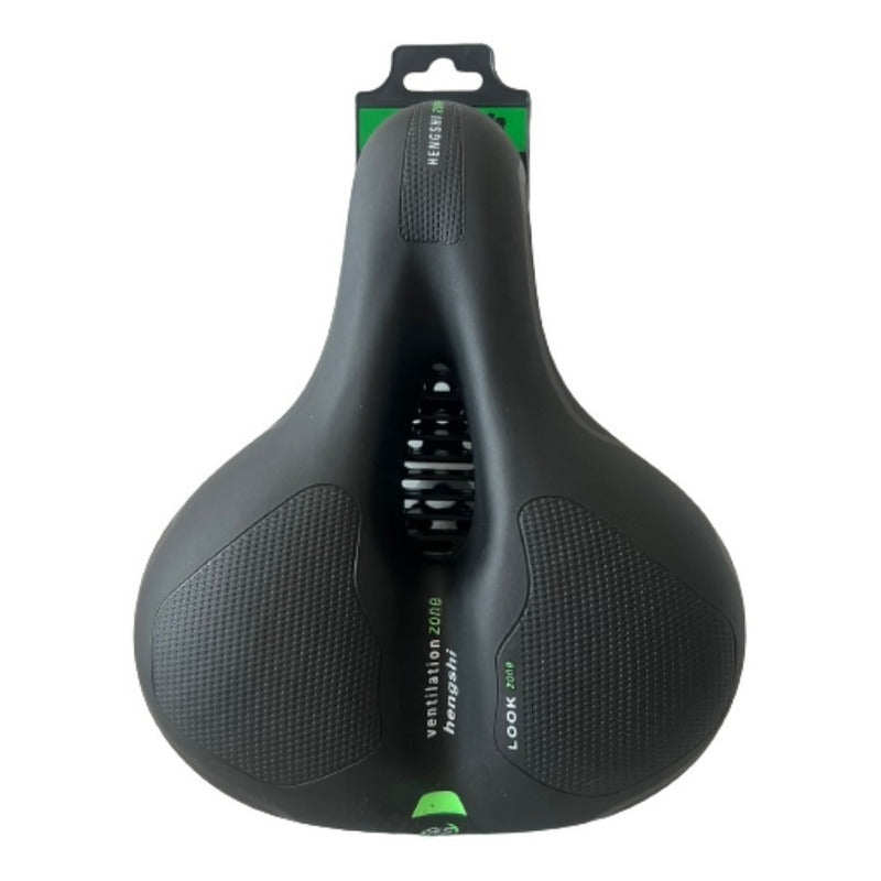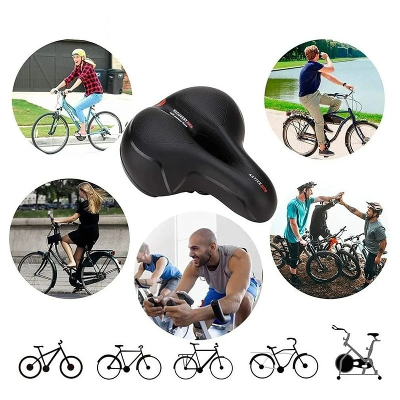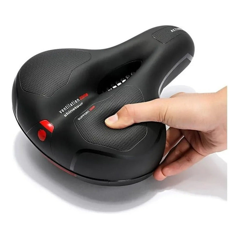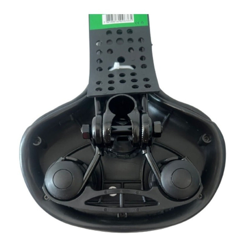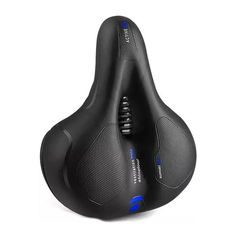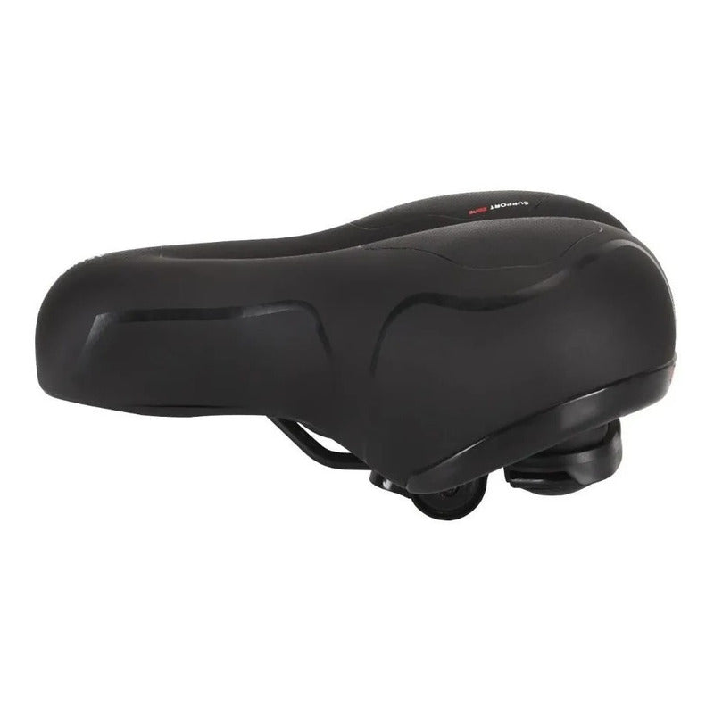 Sillín Asiento Bicicleta Acolchado Ancho Anti-prostático - Sillín de bicicleta amplio y acolchado que brinda gran comodidad. - Canal prostático que protege al ciclista de impactos y presión. - Diseño universal fácil de instalar (se adapta a la mayoría de bicicletas). - Sillín con doble suspensión de bola. - Material: Cuero sintético, relleno de espuma. - Medidas: 25x20x9 cm. - Peso: 650 gr.
