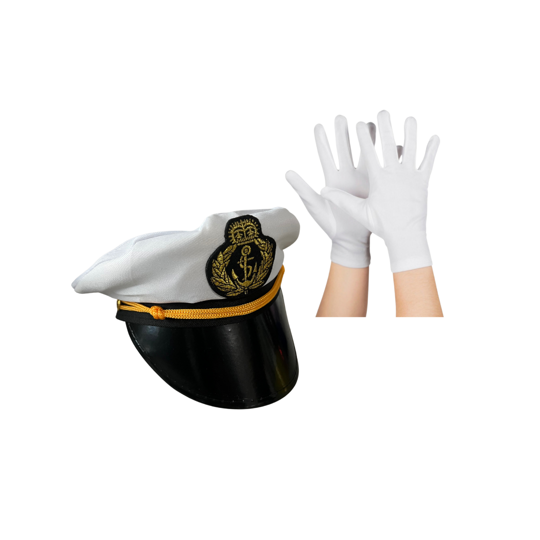 Set de Gorro y guantes de capitan para niños y adultos El set incluye: 1 Gorro 1 Par de guantes blancos Disponible en 2 tamaños: Chico: circunfencia de 52-54cm , Recomendado para niños de 3 a 8 años Grande: circunferencia de 56-58cm , Recomendado para Niños de 10 a 16 años y + HORA DE ENTREGA DE LOS ENVÍOS FLEX ES ENTRE LAS 18:00 a 23:00hrs