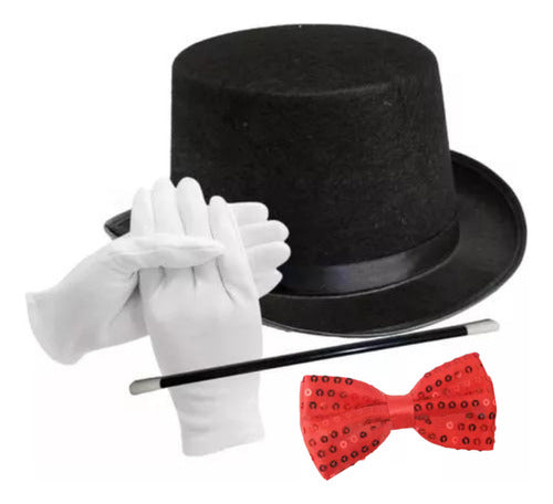 Set Disfraz De Mago Sombrero/ Verita/ Guantes/ Humita Niiño-adulto